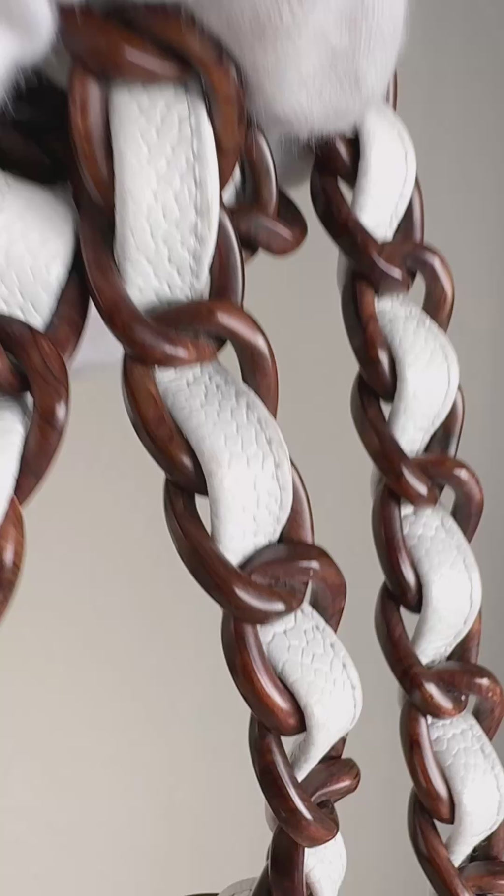The hardware looks like wood, but it is of a resin material, and very lightweight. The strap is a single, thicker/wider strap.