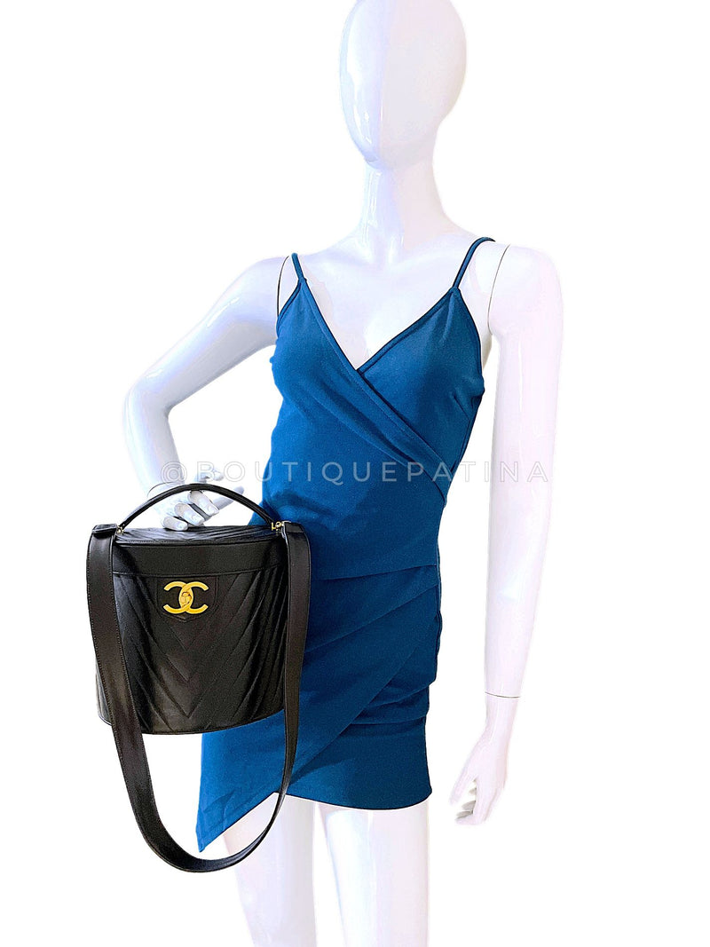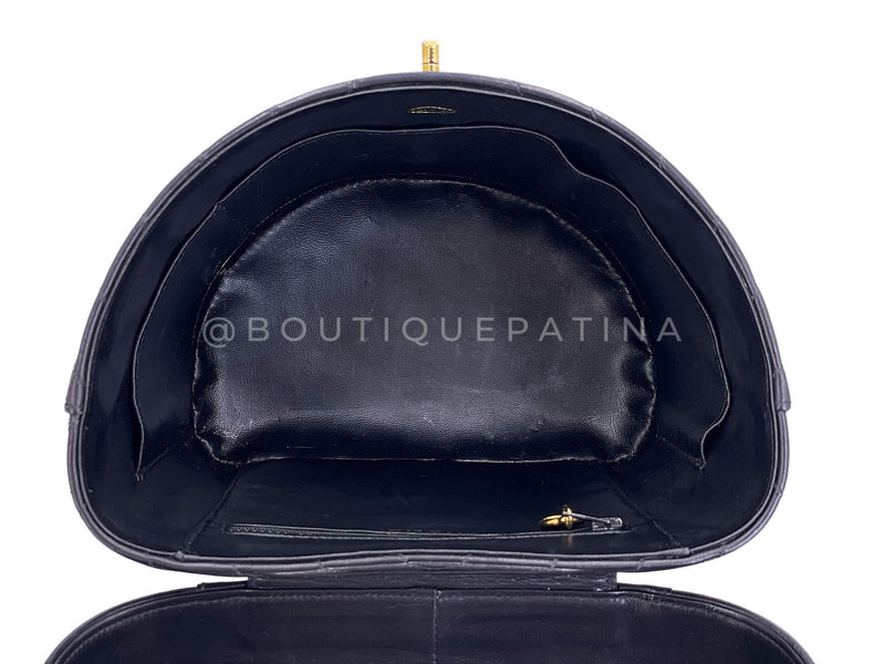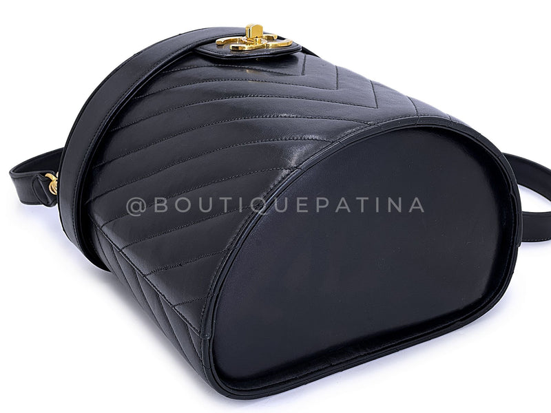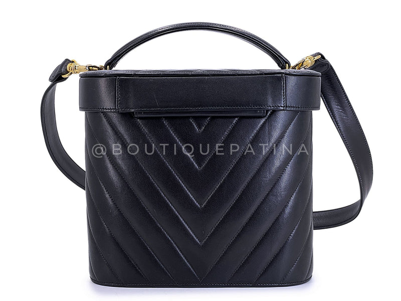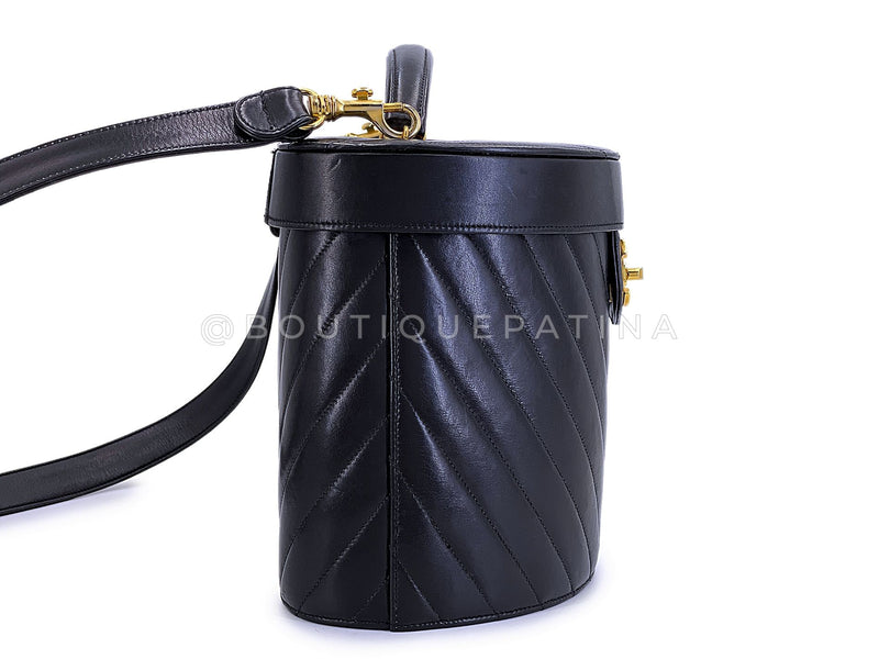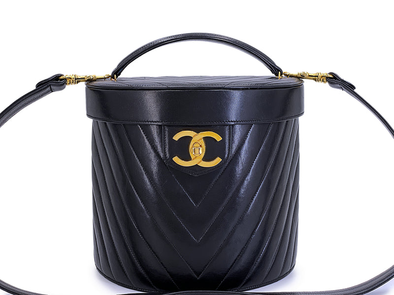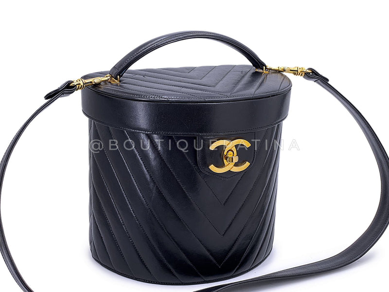 Chanel Vintage Lambskin Chevron Round Vanity Case Bag 24k GHW TT1