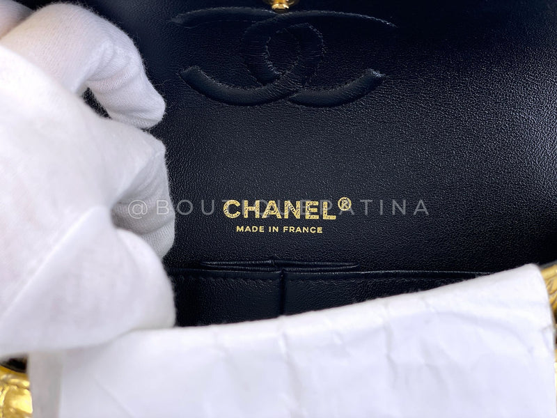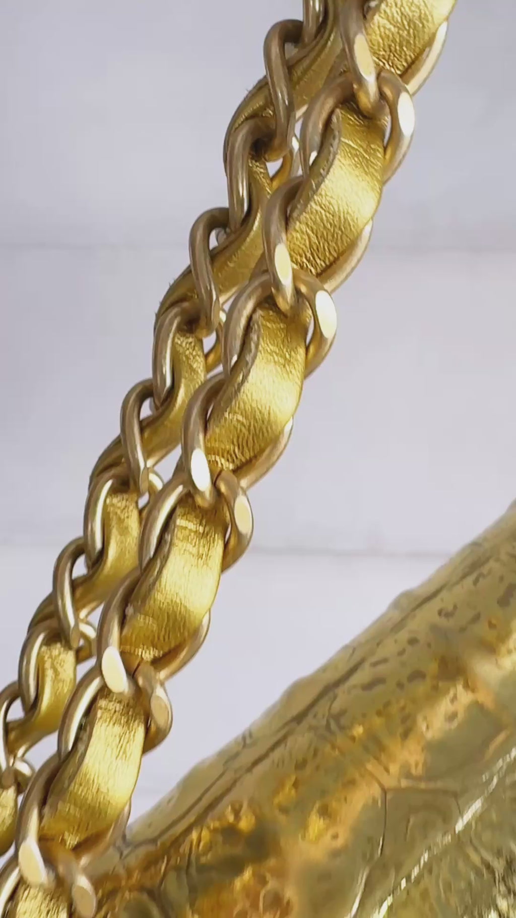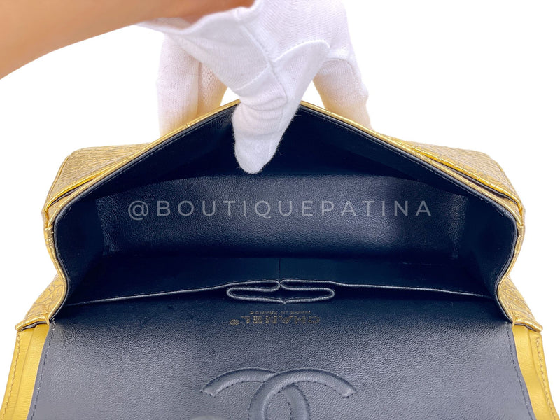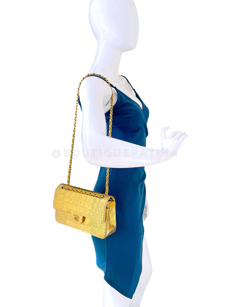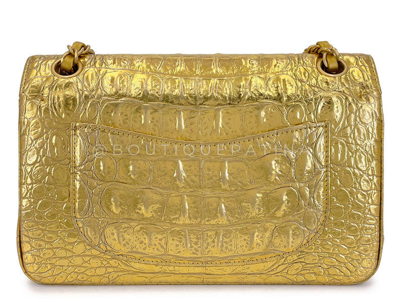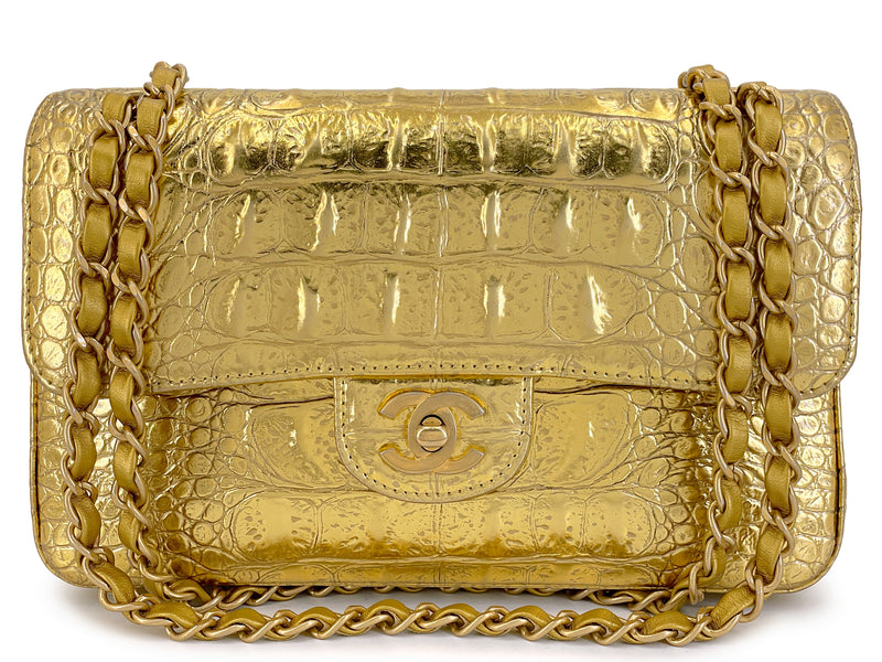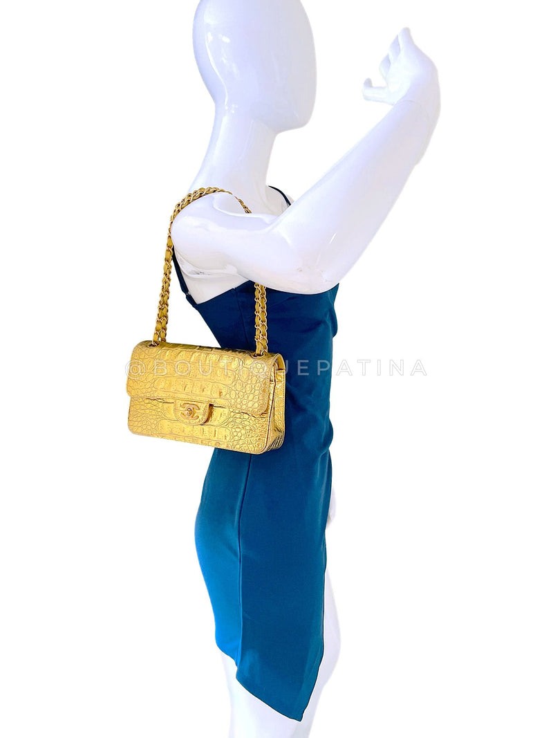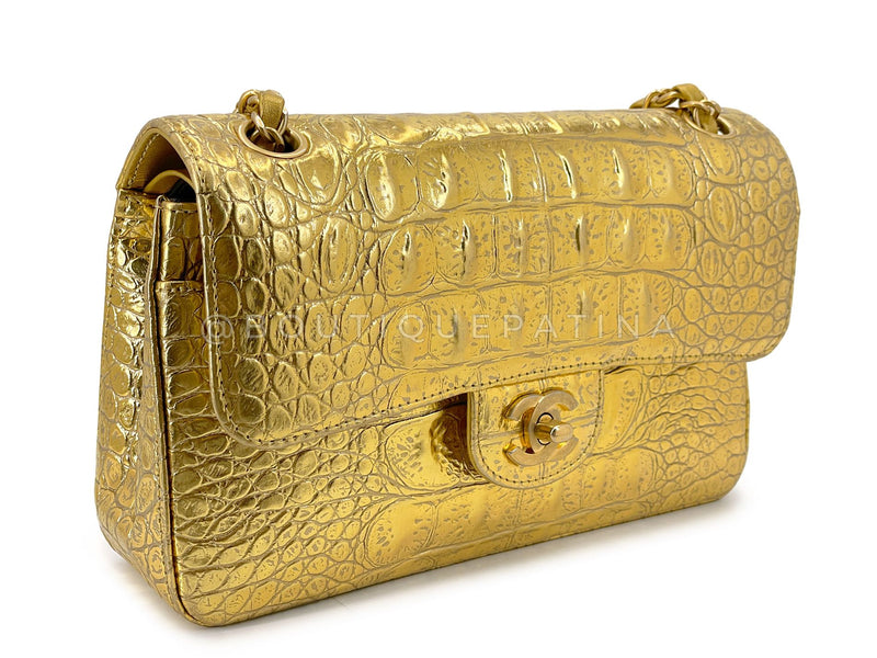 Chanel 19A Gold Crocodile Print Small Classic Double Flap Egyptian Bag GHW YGZ