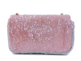 In Multicolor sequin and silver hardware. Pink lambskin interior.