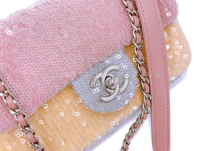 Chanel Pastel Rainbow Sequin Waterfall Rectangular Mini Flap Bag SHW