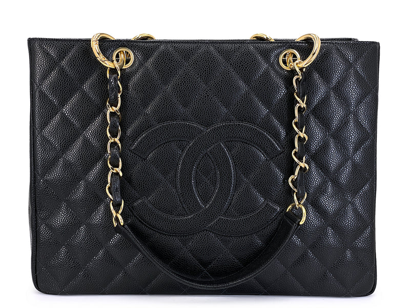 Chanel 2004 Vintage Black Caviar Grand Shopper Tote Bag GST 24k GHW SXC