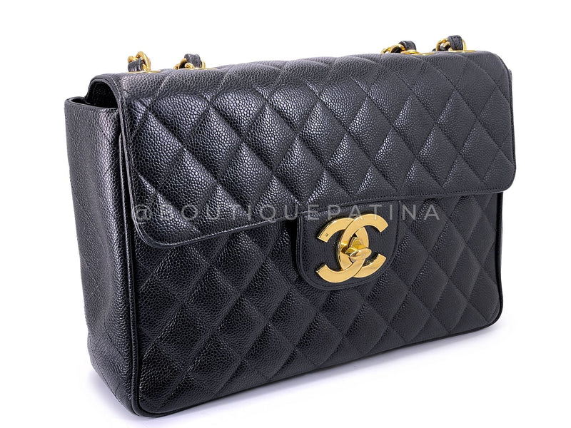 Chanel Vintage Caviar Jumbo Flap Bag 1995 Black Classic 24k GHW THW